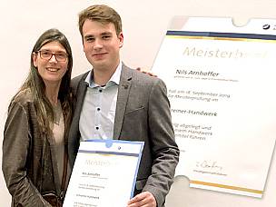 Nils Arnhoffer, Sohn von Sonja Böll, hat seine Weiterbildung zum staatl. geprüften Möbel- und Innenraumgestalter und Schreinermeister mit Erfolg abgeschlossen.